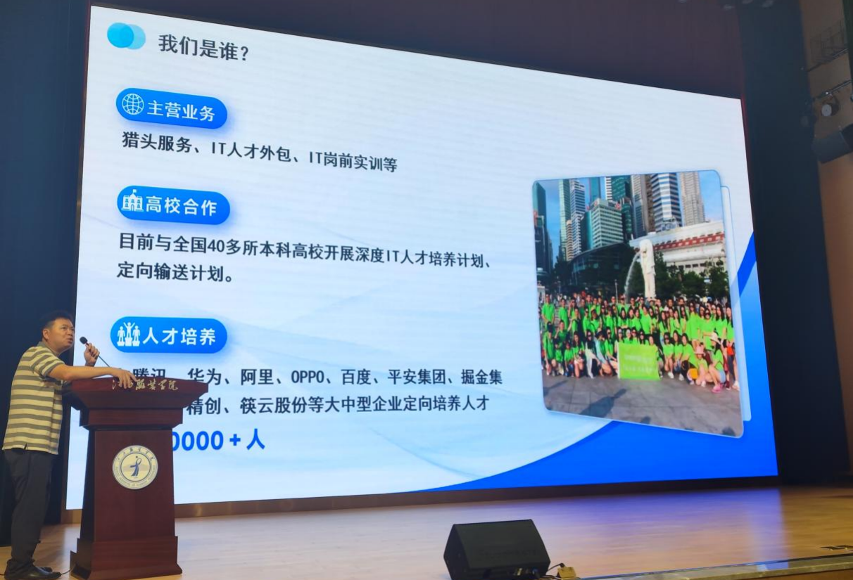 云科未来科技(北京)有限公司对认知实习与专业实习一进行了系统宣讲。内容主要包括实训基地介绍及实习内容说明,实训内容主要涉及软件开发、硬件设备、网络、物联网安全等领域,涵盖团队拓展课程、集训、阶段评比、优秀学员荣誉证书颁发、班级活动、面试指导、项目答辩技巧、一对一模拟训练及结课典礼等环节。另外,对实习期间的管理制度、就业指导服务及课余生活安排等也做了简要说明。