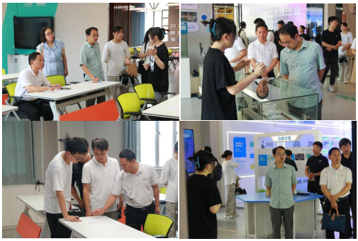 首先,由讲解员李晴带领我们参观了智能教育装备展示体验中心,通过讲解了解到中部教育装备创新产业城的建设理念,是打造以教育装备设计研发、产业孵化、生产制造、展示交易、应用培训、研学实践等为一体的数字化教育装备产业生态圈。在体验中心我们参观了微型图书馆、智慧教室、书法教室、VR+智汇教育、Scribit绘画设计机器人、人工智能实验室、希沃·常态化智慧课堂、虚拟校园电视台等,深入了解到数字教育给学习生活带来的便捷。