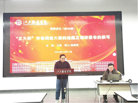 【XC体育讯】2024年12月17日下午2:00在图书馆学术报告厅成功举办了第400期博雅讲坛,报告主题为“‘正大杯’市场调查大赛选题及调查报告撰写”。本次报告旨在提高公司师生对市调大赛的重视,为第十五届“正大杯”市调大赛的参赛做铺垫。本次报告邀请到江西理工大学副教授、硕士生导师、“正大杯”国赛一等奖指导老师王锐博士主讲,报告由XC体育副经理刘巍博士主持。他代表公司对王博士的到来表示热烈的欢迎,简要介绍了本次学术报告的目的和意义。