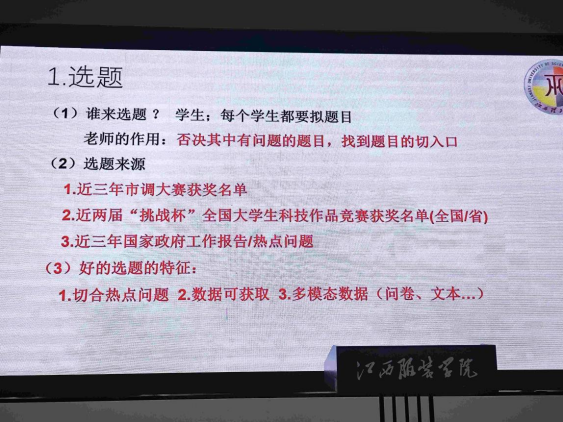 王博士针对“正大杯”选题、研究报告的撰写及视频录制及参赛分别做了详细的阐述。选题方面,他强调选题来源可以是近三年市调大赛获奖题目、近两届“挑战杯”全国老员工科技作品竞赛获奖选题(全国/省)或者是近三年国家政府工作报告/热点问题。他认为一个好的选题的特征:一是切合热点问题,二是数据可获取,三是多模态数据,如问卷数据、文本数据等。