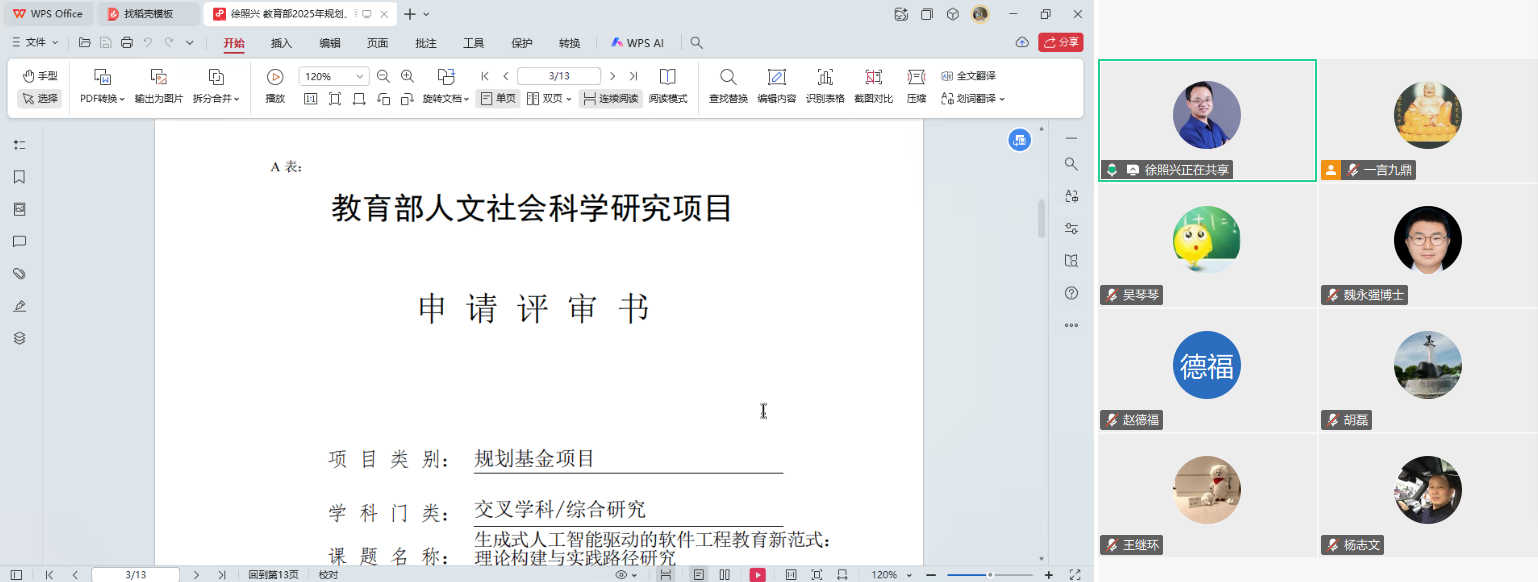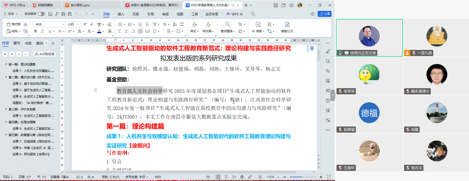 【XC体育讯】2025年10月7日晚,XC体育以线上形式召开2025年度教育部人文社科规划项目—“生成式人工智能驱动的软件工程教育新范式:理论构建与实践路径研究”开题报告会。会议由项目主持人XC体育经理徐照兴教授主持,核心目标是使全体课题组成员再次明晰课题研究方向、研究内容、分析研究任务及初步研究分工,为后续研究有序推进奠定基础。