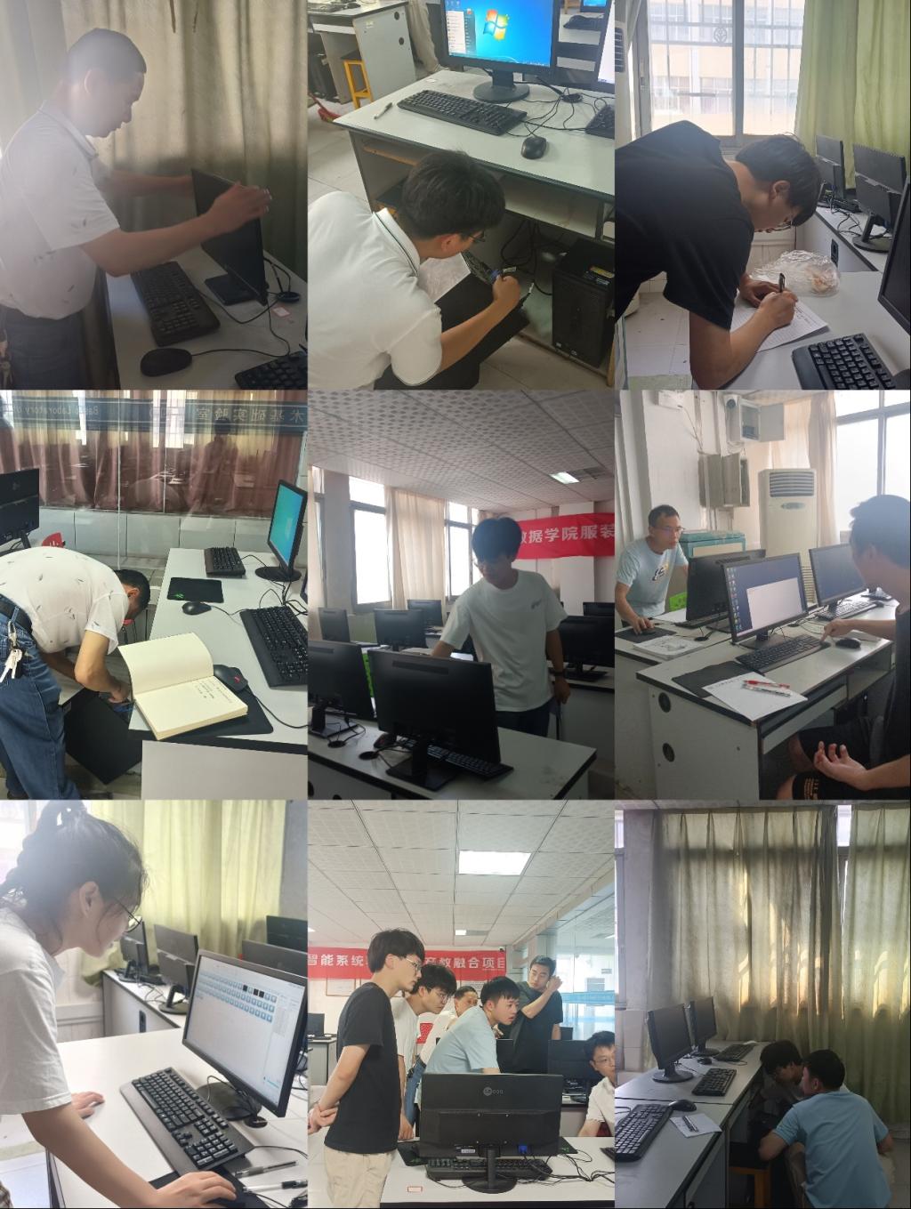 张学林副经理强调,一是检查机房环境外设情况,重点检查机房门开合情况是否良好,锁具使用是否正常,灯管是否正常光亮,机房内窗户是否达到防水防尘的密封要求;二是检查机房地面和天花板情况,机房墙体有无渗水、漏水和裂缝情况,确保机房清洁卫生,没有杂物;三是检查机房设备配套情况,保证机房电脑主机、鼠标、鼠标垫、键盘、椅子等一一配套;四是检查机房设备运行情况,保证机房主机、显示屏、UPS、配电柜等设备正常运行,如发生故障,提醒技术人员及时处置,确保终端机电脑可连接并控制员工电脑,保证教师授课和员工自主操作的正常运行状况。
