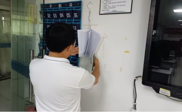 最后在9月10日,张学林副经理组织教研室主任、实践教学秘书成立核查小组,为确保万无一失,他再次亲临现场,对前阶段的实践教学条件保障工作进行了核查,发现个别实验室温馨提示掉落在地、实验实训室旧的安全卫生检查记录本没有更换,东2栋705、706室员工座椅没有放在座位,针对问题,要求实践教学秘书立马整改到位。