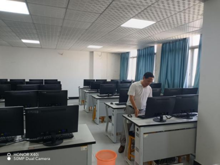 张学林副经理强调,一是检查机房环境外设情况,重点检查机房门开合情况是否良好,锁具使用是否正常,灯管是否正常光亮,机房内窗户是否达到防水防尘的密封要求;二是检查机房地面和天花板情况,机房墙体有无渗水、漏水和裂缝情况,确保机房清洁卫生,没有杂物;三是检查机房设备配套情况,保证机房电脑主机、鼠标、鼠标垫、键盘、椅子等一一配套;四是检查机房设备运行情况,保证机房主机、显示屏、配电柜等设备正常运行,如发生故障,提醒技术人员及时处置,确保终端机电脑可连接并控制员工电脑,保证教师授课和员工自主操作的正常运行。