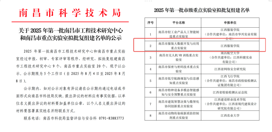 喜报||公司服装大数据开发与应用重点实验室成功入选 2025 年南昌市重点实验室组建名单