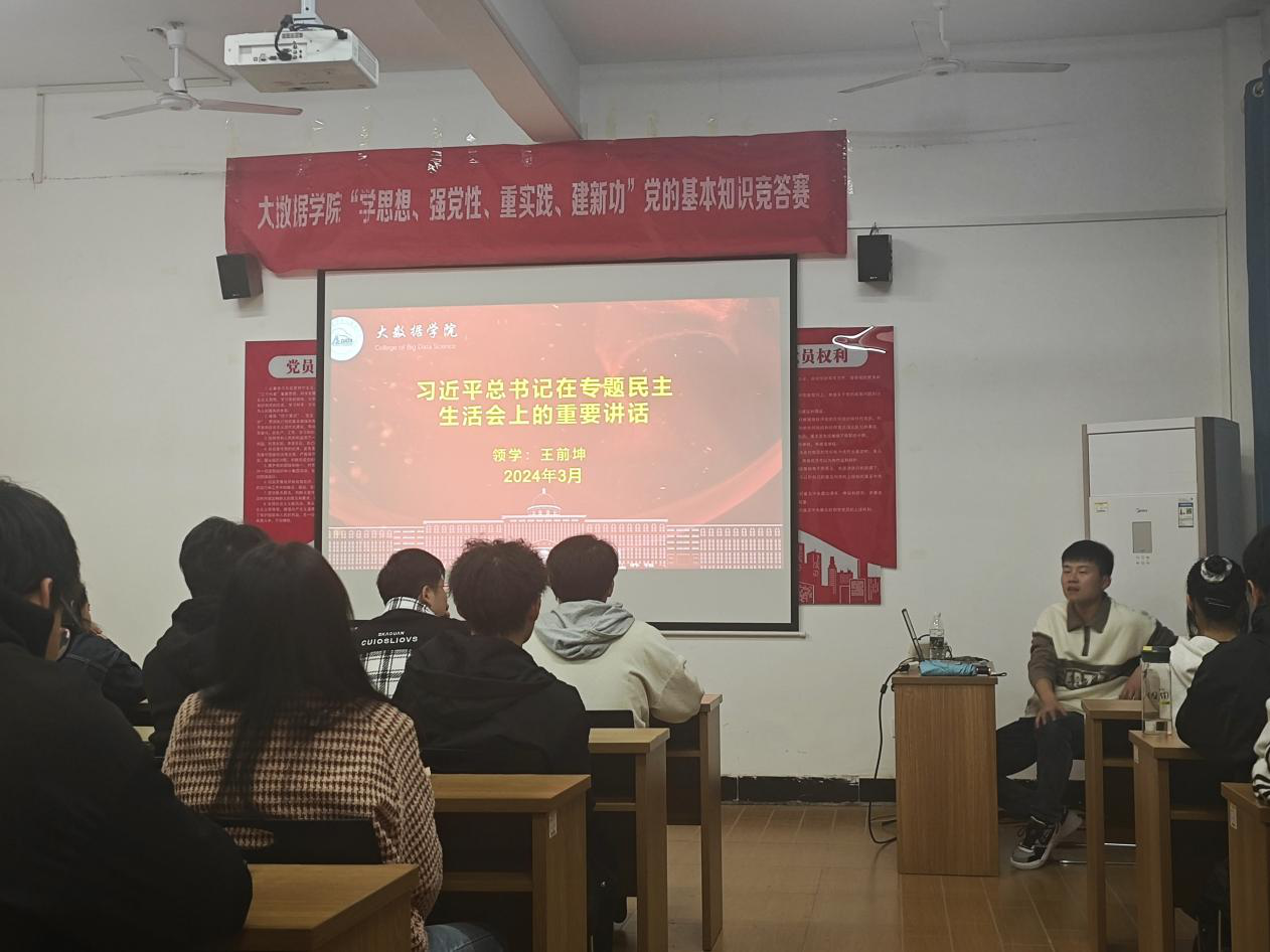 【XC体育讯】为了深入学习习近平总书记在专题民主生活会上的重要讲话精神、学习习近平总书记有关坚持和完善人民代表大会制度的重要思想、关于保障人民当家作主的重要论述和习近平对江西新余市渝水区临街店铺火灾事故做出重要指示精神。XC体育于2024年3月13日在党员活动室召开主题为“学思想、强党性、重实践、建新功”主题党日活动。本次会议由王前坤老师主持,大数据36期、37期入党积极分子参加本次会议。