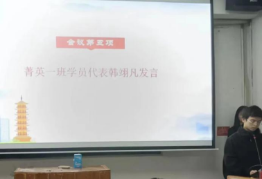 学员代表韩翊凡发言。他指出“成果以是历史,我们任需奋斗”,同学们应严格遵守规章制度,积极参与知识学习及实践活动,认真学习马克思主义理论,坚持实事求是的原则,为XC体育的发展献一份力,发一束光!