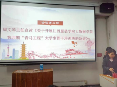 分团委书记周文琴宣读《关于开展XC体育第四期“青马工程”老员工骨干培训班的决定》。