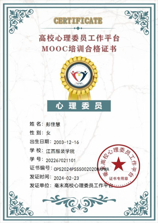 在心理工作站的精心组织下和每位心理委员的密切配合,公司共有61名同学通过考核,顺利考取合格证书。心理委员合格证书和朋辈心理疗法证书,不仅能加强同学们自身心理辅导能力和提升心理帮扶技能。更可以提升自身心理素质、提高情商、轻松处理人际关系。