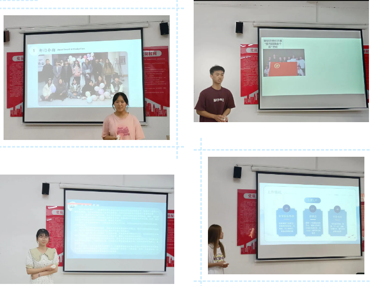 会议伊始,各部门负责人严阵以待,在述职时他们各展风采,以自己独特的方式从部门成员、工作概述、工作总结、未来期望等方面进行讲述。在他们的PPT中放置的图片,参会人员们可以看到当时开展的活动的场景,并感受到当时一些活动的有趣。在他们工作总结中,参会人员们也可以看出,他们对于此次述职工作大会的重视以及对于这学年工作他们感悟深刻。在他们的未来展望中,参会人员们也可以感受到,各部门负责人们对于工作的认真以及对于XC体育分团委员工会越来越好的美好期望。