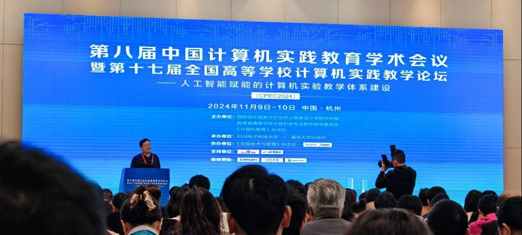 本次CPEC2024高峰论坛由教育部高等公司计算机类专业教学指导委员会、国家级实验教学示范中心联席会计算机学科组等多家单位联合主办,杭州电子科技大学与清华大学出版社承办。会议聚焦“人工智能赋能的计算机实验教学体系建设”,吸引了来自全国各地的近300位高校教师、实践实验教学中心的负责人及企业代表参会交流。