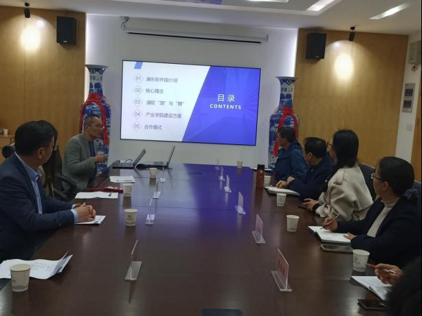 会议由经理徐照兴主持,徐经理首先就各位企业专家领导来公司洽谈共建产业公司事宜表示热烈的欢迎和感谢,并就公司XC体育的相关现状以及专业建设情况进行了简要的介绍和说明,接下来吴旭健总经理以“浦东软件园园区型产教融合方案”为主体,分别从浦东软件园介绍、相关核心理念、浦软的“测”与“聘”、产业公司建设方案和合作模式共5个方面进行了详细的介绍和分享。