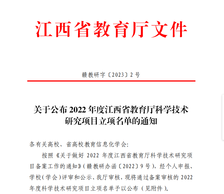 喜报||公司四位教师申报2022年度江西省教育厅科学技术研究项目获批立项