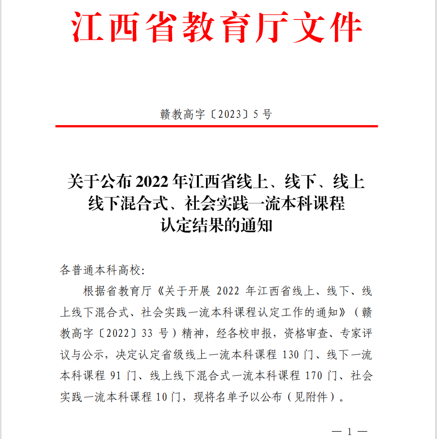 喜报||公司喜获2022年度2门江西省一流本科课程认定