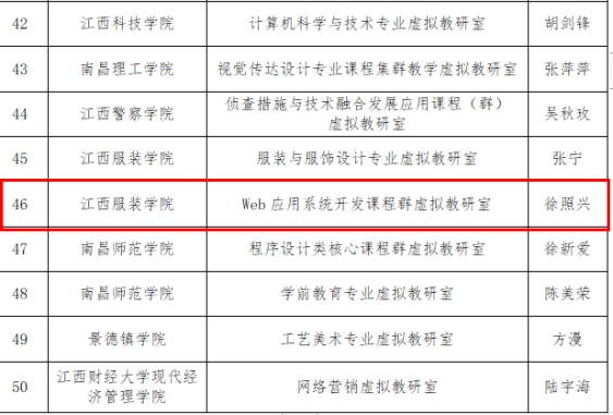 【XC体育讯】近日,江西省教育厅发布《关于2023年江西省首批虚拟教研室立项建设点的公示》,大数据公司喜获佳绩,由徐照兴教授负责的“Web应用系统开发课程群虚拟教研室”获批2023年江西省首批虚拟教研室建设立项。