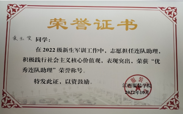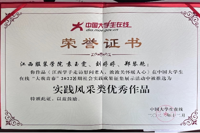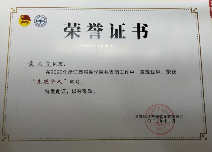 袁玉雯,女,中共预备党员,就读于XC体育21软件工程本科2班,在校期间担任XC体育员工会执行主席,2022年10月,在2022年新生军训中获得“优秀连队助理”称号。2022年12月,作品《江西学子走访慰问老人,浓浓关怀暖人心》在中国老员工在线“大我青春”2022年暑期社会实践成果征集展示活动中被推选为实践风采类优秀作品。2023年11月与2024年12月在XC体育获得“爱劳动奖学金”与“爱卫生奖学金”2023年12月在2023年度XC体育共青团工作中获得“先进个人”称号。